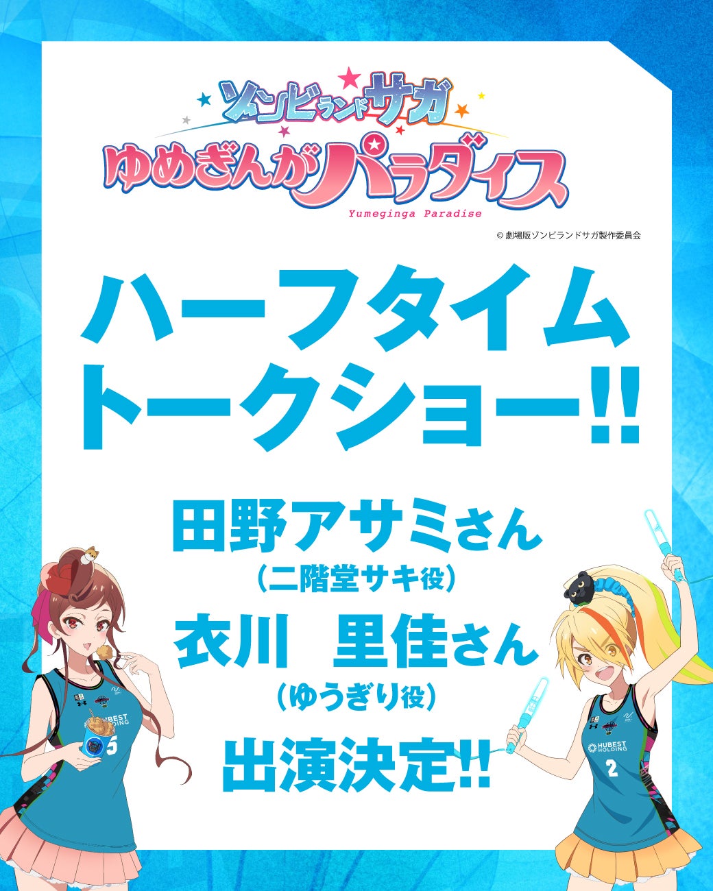 「ゾンビランドサガゆめぎんがパラダイス」田野アサミさん(二階堂サキ役)、衣川里佳さん(ゆうぎり役)によるハーフタイムトークショー‼️🎙️