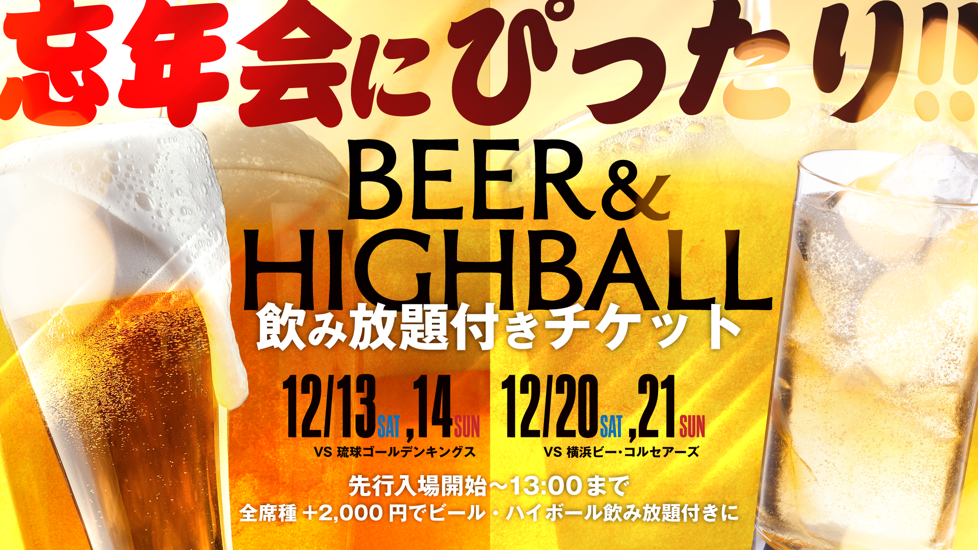 【TICKET】ビール・ハイボール飲み放題付きチケット販売決定!!