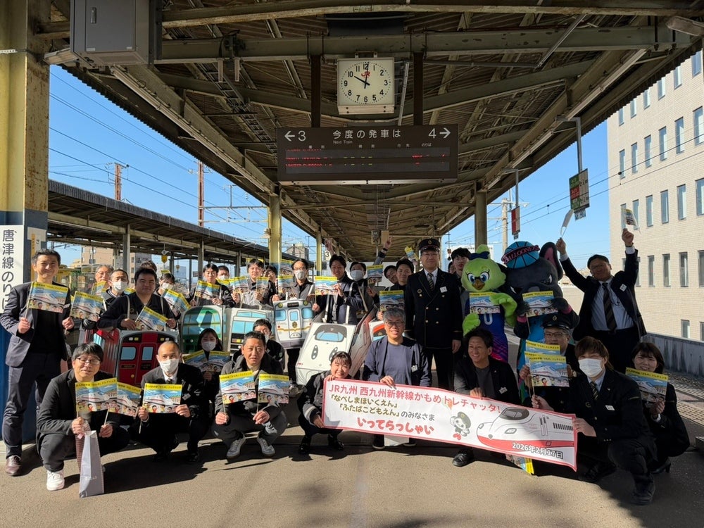 このたび、幼稚園や小学校の団体を対象にJR九州が実施する、西九州新幹線「かもめ」の貸切列車プラン【かもめトレチャッタ!】の出発式に、バルたんが参加いたしましたのでお知らせいたします。