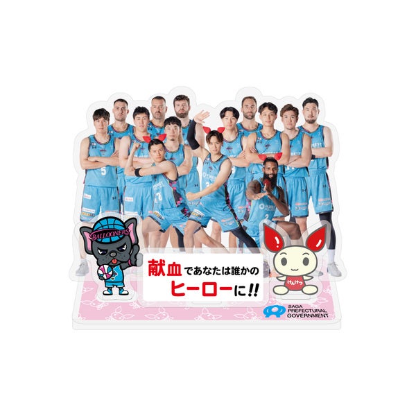 また、コラボクリアファイルに付属している引換券を持って献血プラザさが(SAGAアリーナ付近)で、献血にご協力いただいた方先着100名さまに、コラボアクリルスタンドをプレゼント!