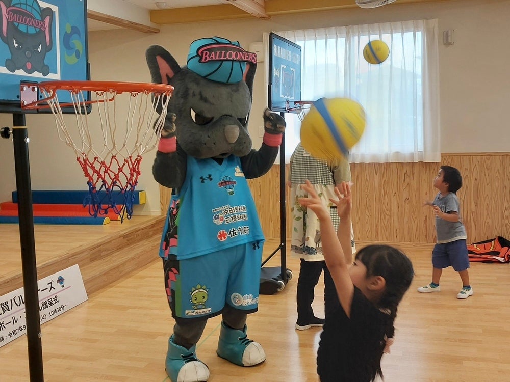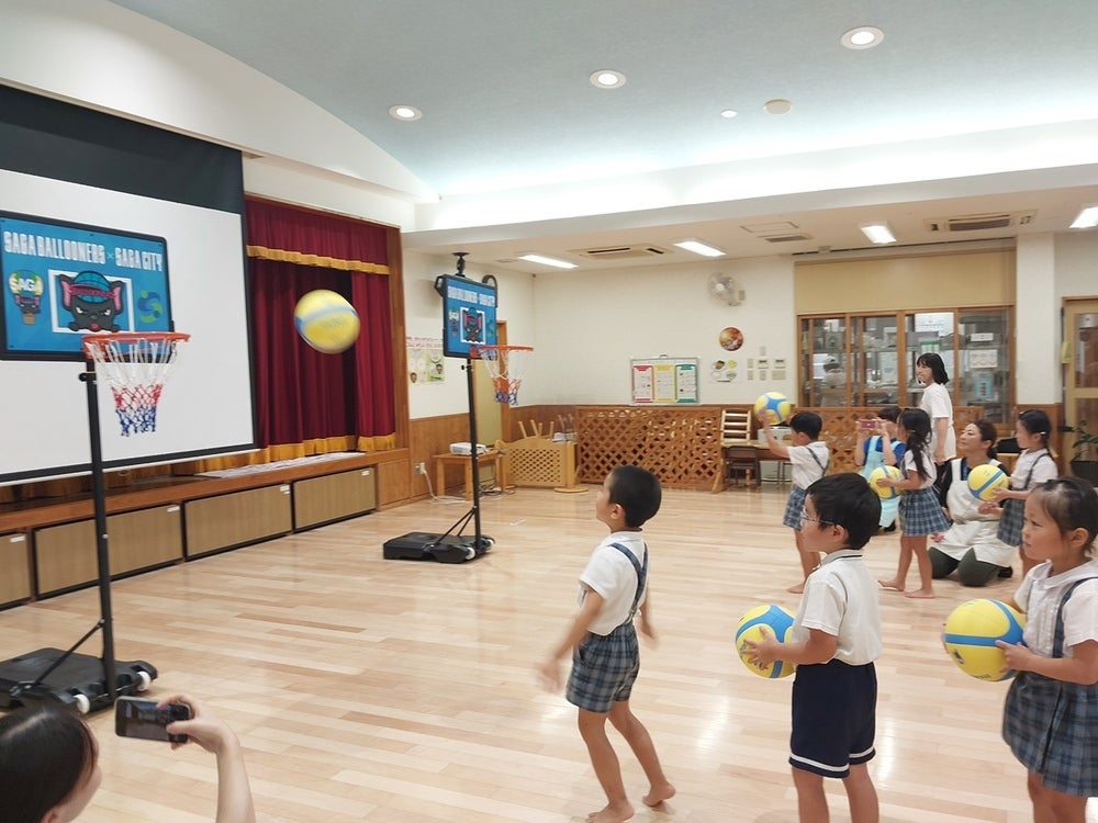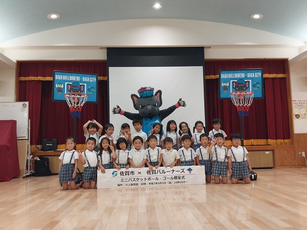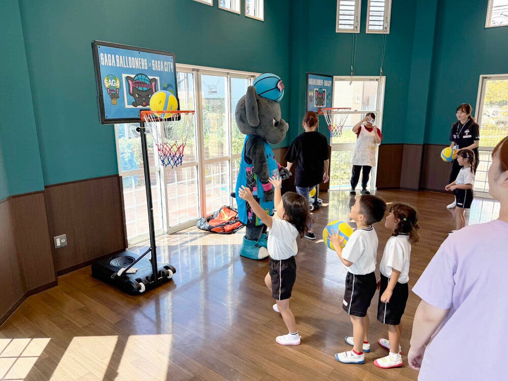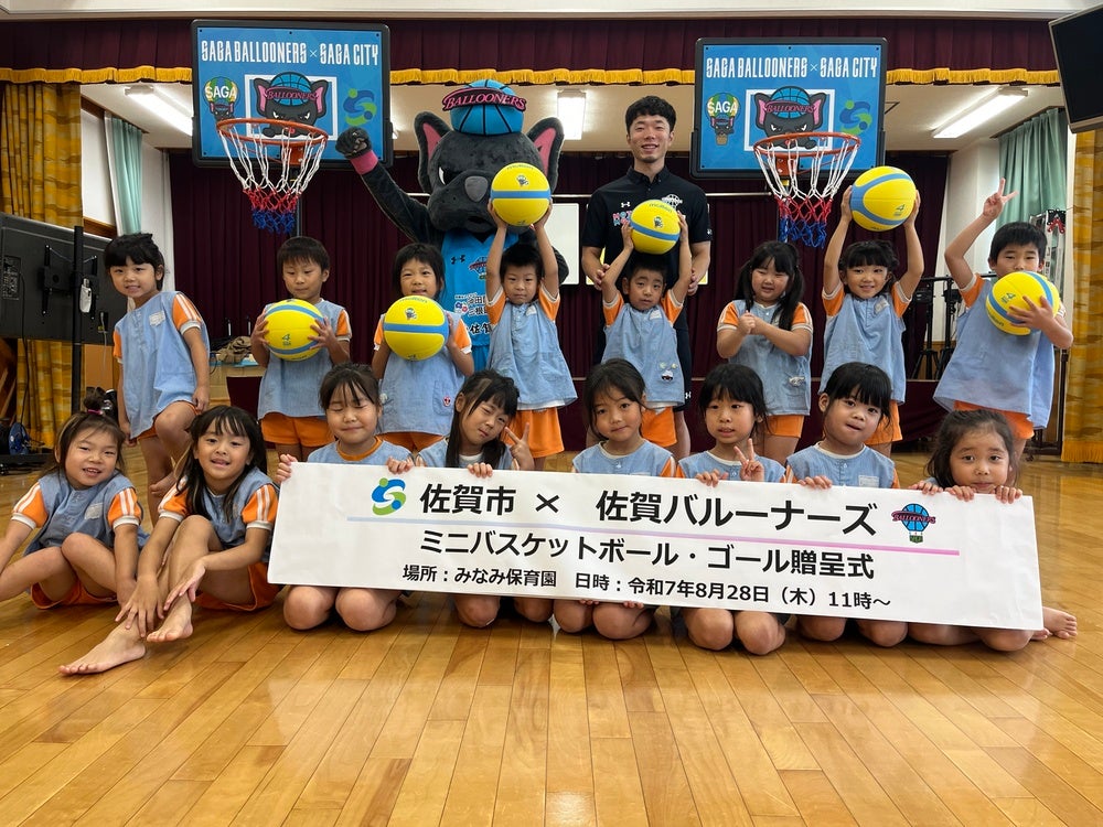 このたび、佐賀バルーナーズでは、昨年度に引き続き、佐賀市と佐賀バルーナーズの連携事業として、佐賀市内の教育・保育施設を対象に、室内用ミニバスケットゴール・ボールを贈呈します。