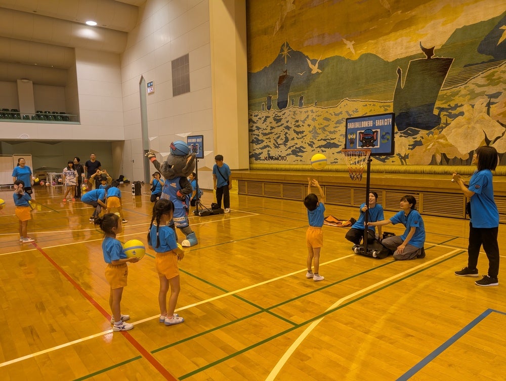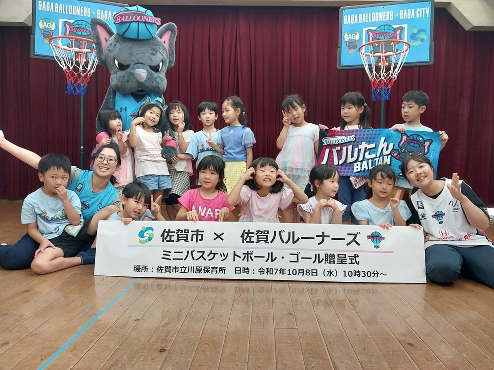 このたび、佐賀バルーナーズでは、昨年度に引き続き、佐賀市と佐賀バルーナーズの連携事業として、佐賀市内の教育・保育施設を対象に、室内用ミニバスケットゴール・ボールを贈呈します。