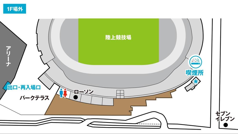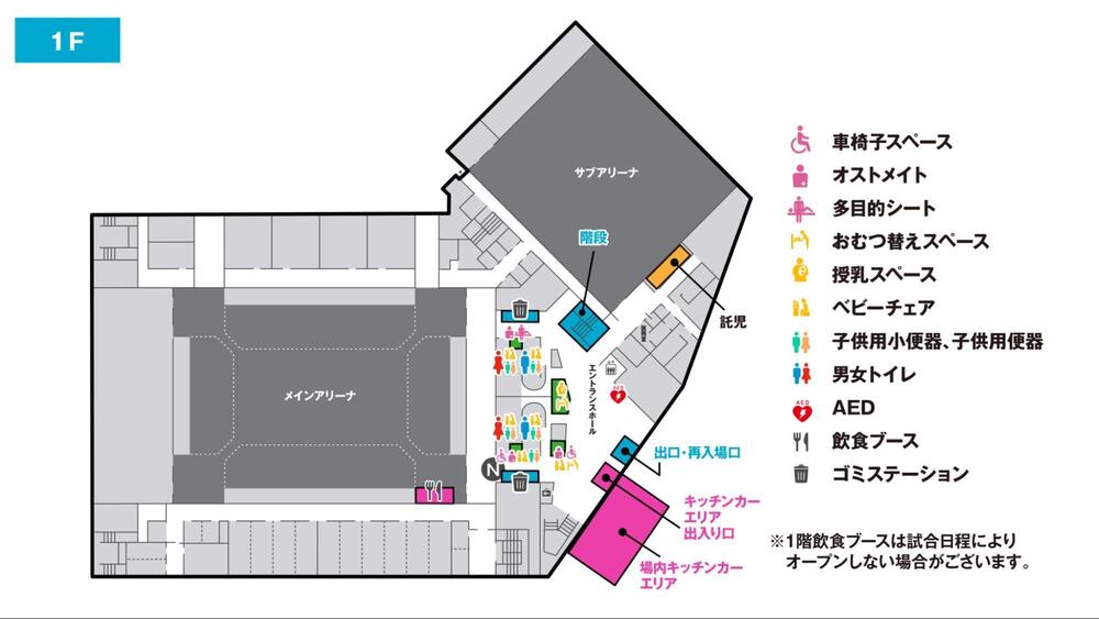 ※1F外に場内扱いキッチンカーエリア設置。(場外からのアクセスができないエリアとなります。観戦チケットが必要です。ご了承ください。)