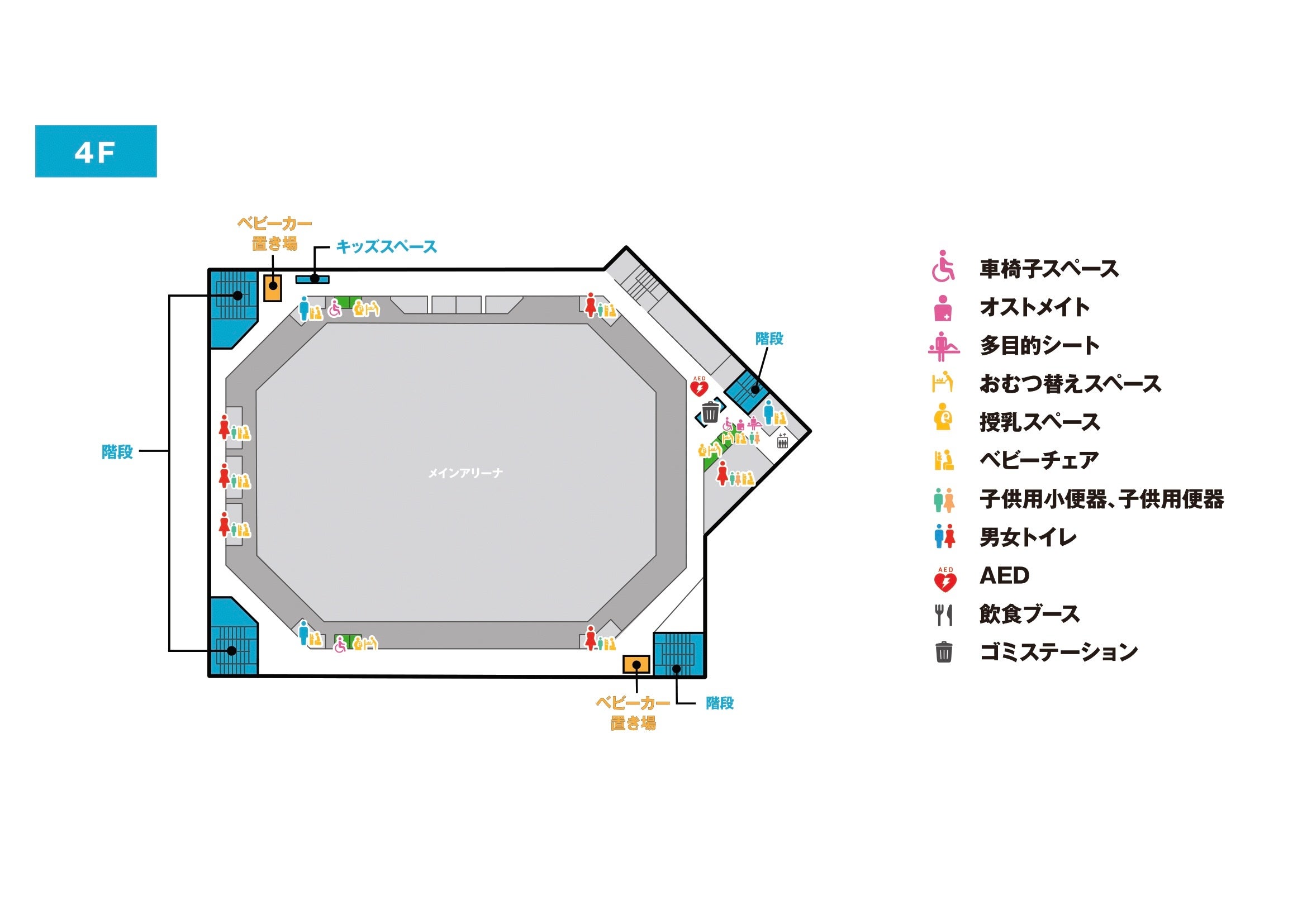→2階:EFゲート間、4階:南側ベビーカー置き場横
