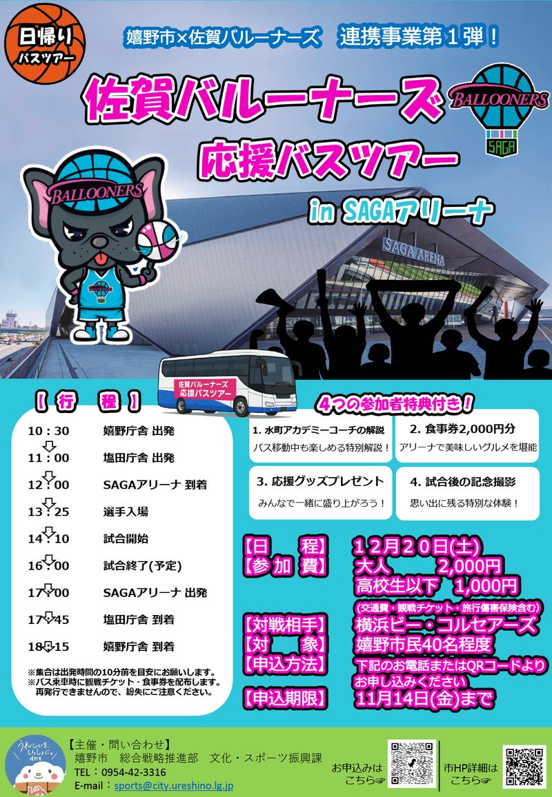 佐賀バルーナーズの試合を観に行きたいけれど、SAGAアリーナまで少し距離があってなかなか行けないと思っていた方、この機会に是非ご参加ください!