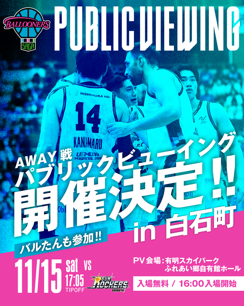 11/15(土)vs.SR渋谷 佐賀パブリックビューイングin白石町 実施のお知らせ