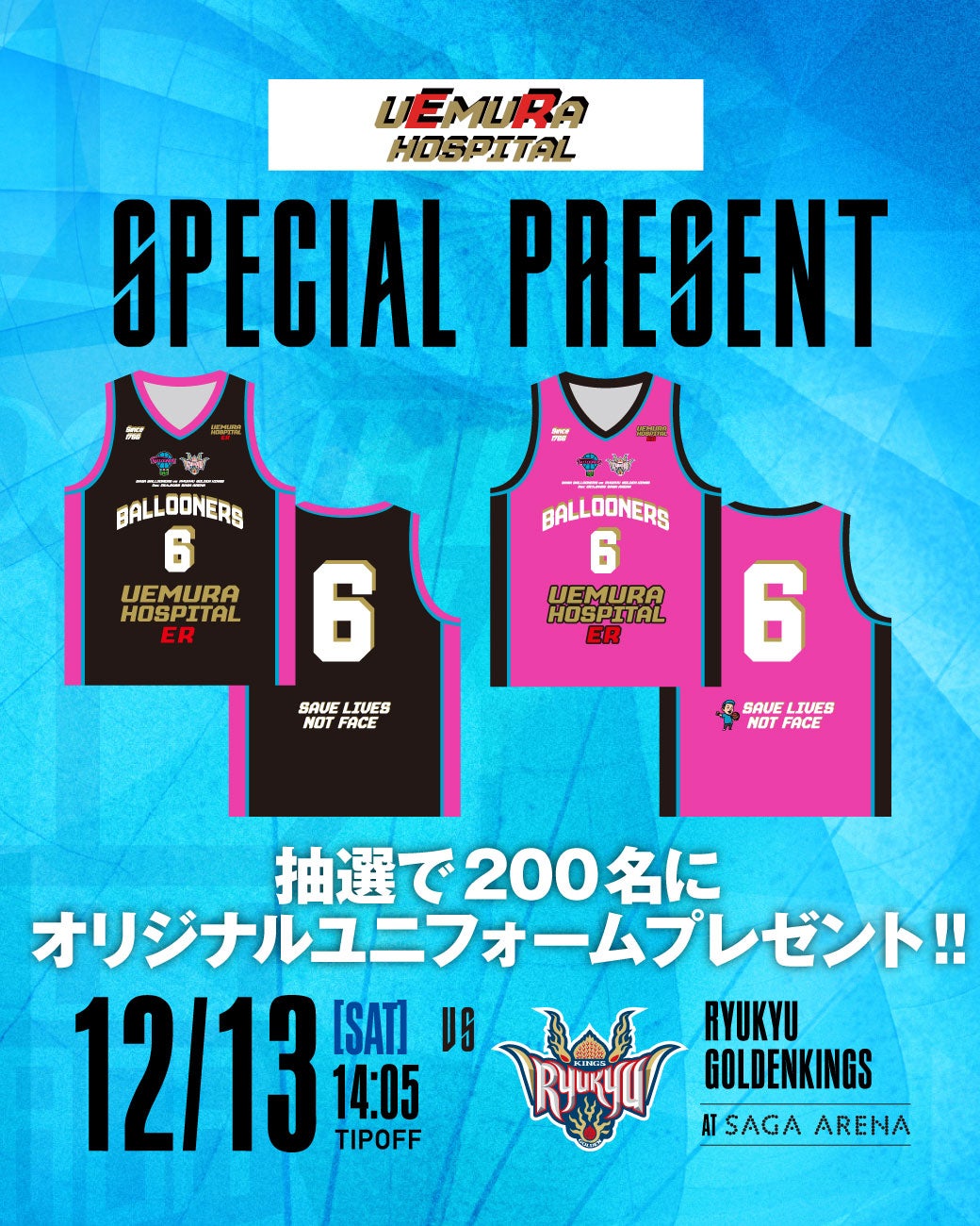上村病院とのオリジナルコラボユニフォームを抽選で計200名さまにプレゼント!!