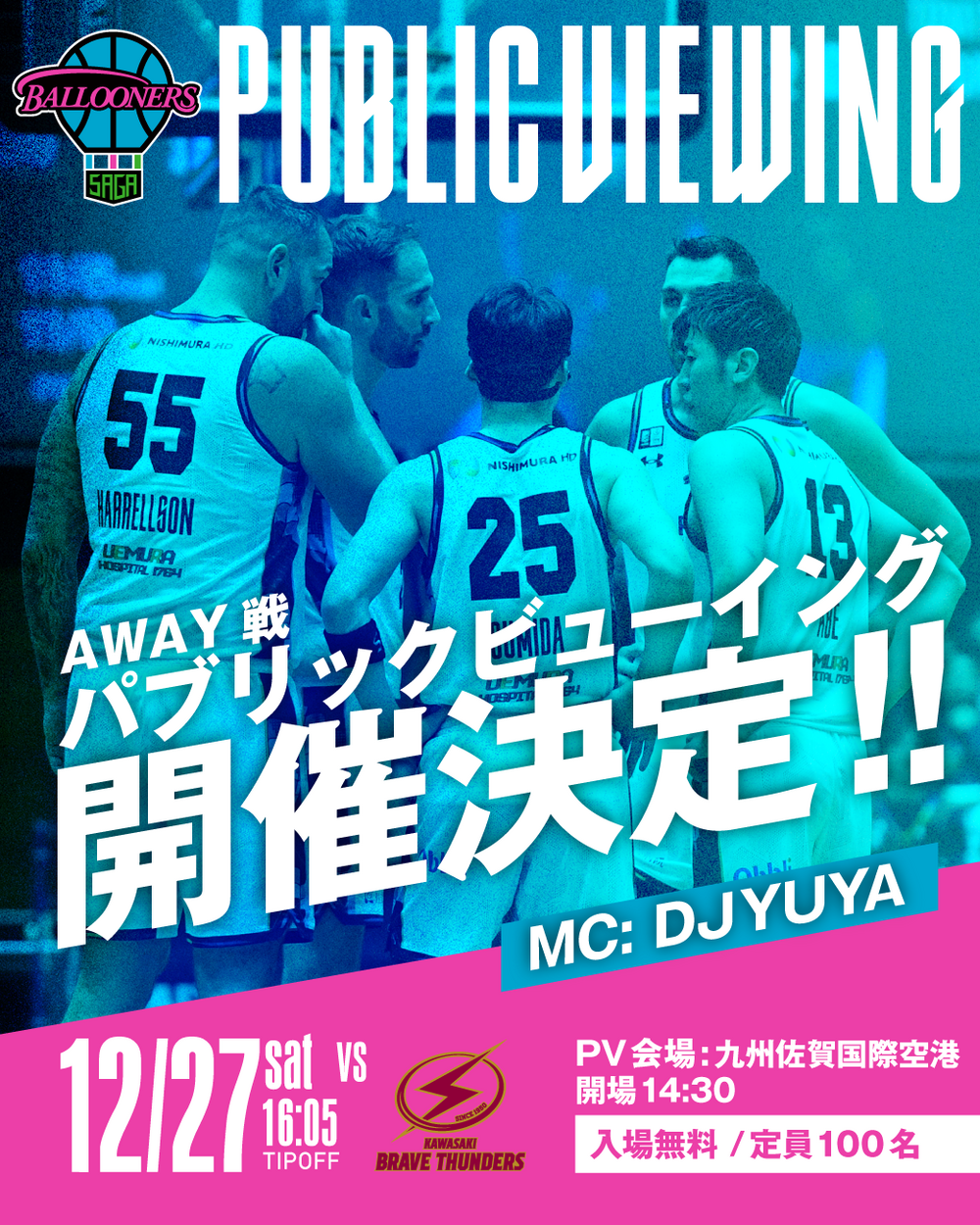 12/27(土)vs.川崎 [GAME2] 九州佐賀国際空港にてパブリックビューイング開催のお知らせ !