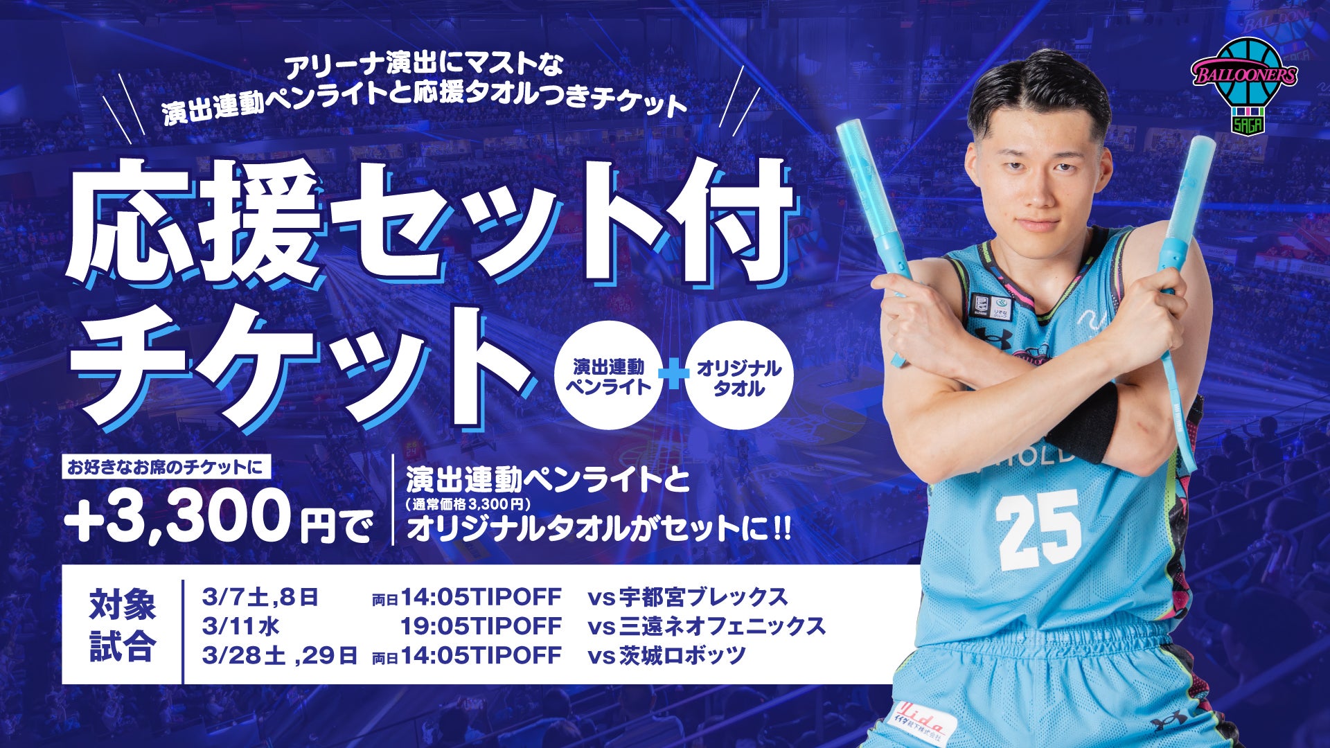 このたび、3月限定の「応援セット付きチケット」の販売が決定しました!観戦とあわせて、応援がもっと楽しくなるグッズを手に入れよう!
