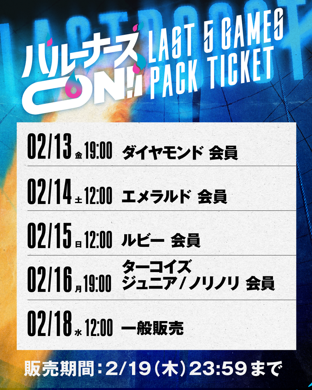 【TICKET】バルーナーズ ON!特別企画 『LAST 5 GAMESパックチケット』販売決定!