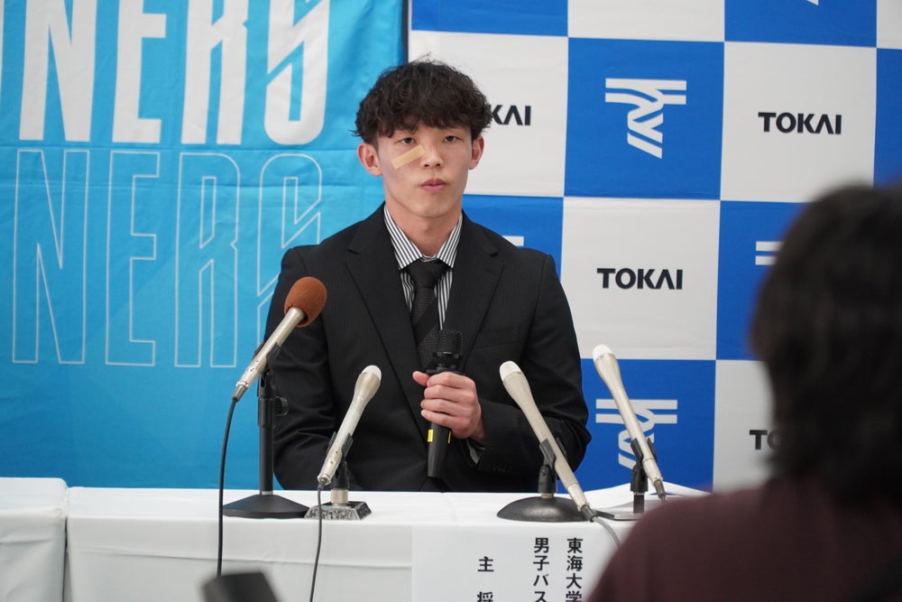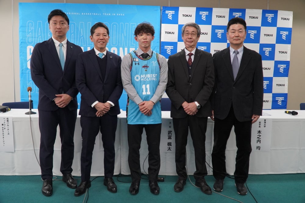 1月29日(木)に開催されたB.LEAGUEドラフト2026において交渉権を獲得した武富楓太選手とのプロ契約に伴う記者会見が、東海大学九州にて実施されました。