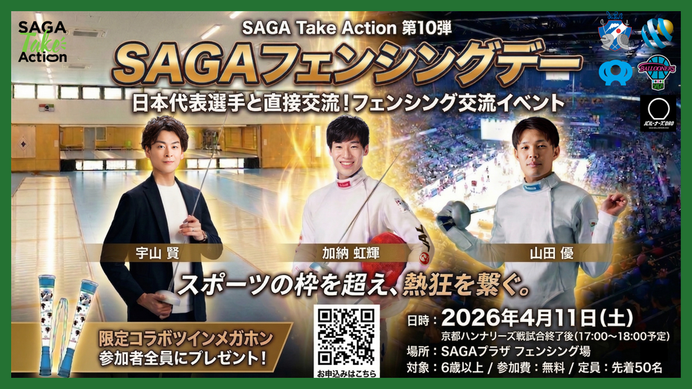 【SAGA Take Action 第10弾】フェンシング日本代表3名が集結!「SAGAフェンシングデー」開催のお知らせ