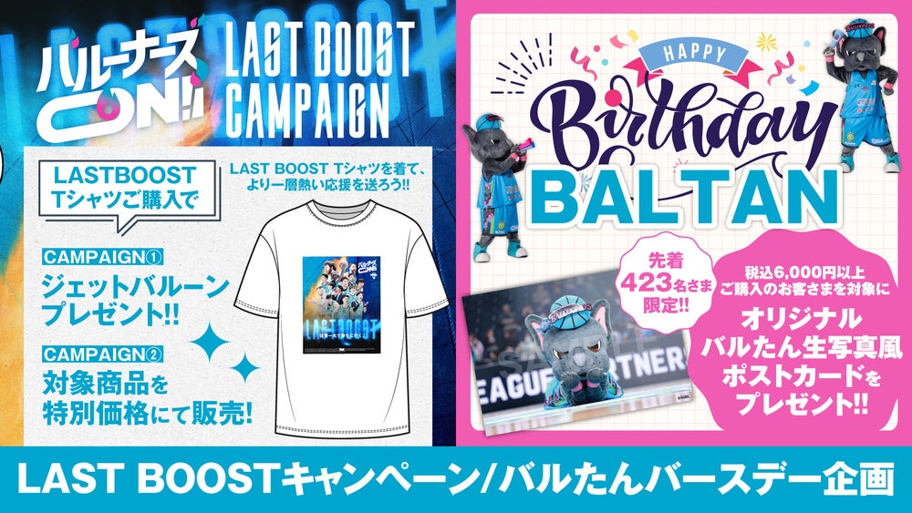 このたび、ホーム最終戦に向けた応援企画として「LAST BOOSTキャンペーン」および「バルたんバースデー企画」を実施いたします。