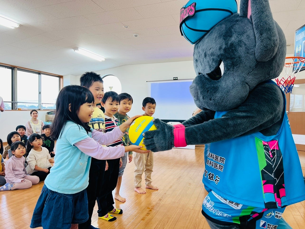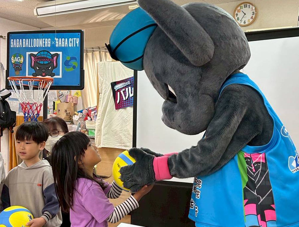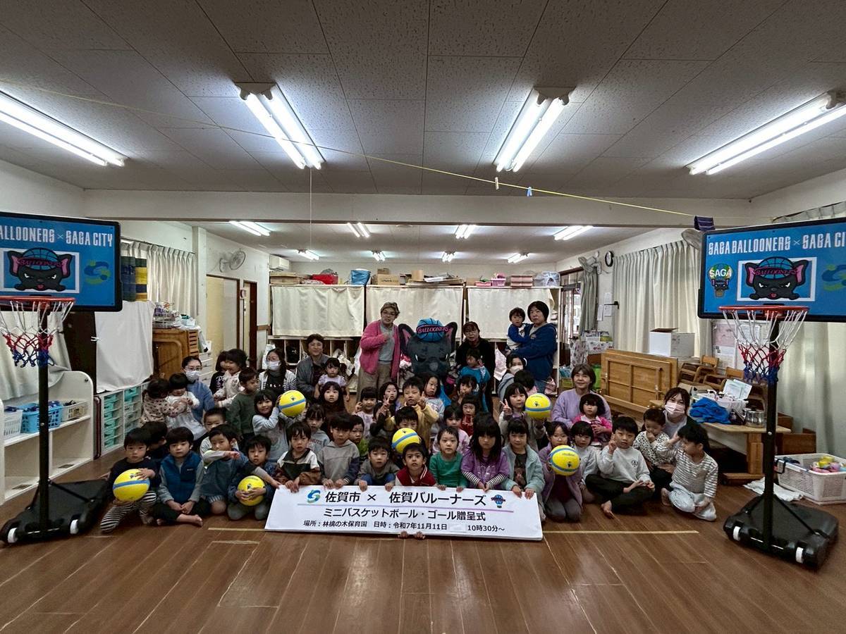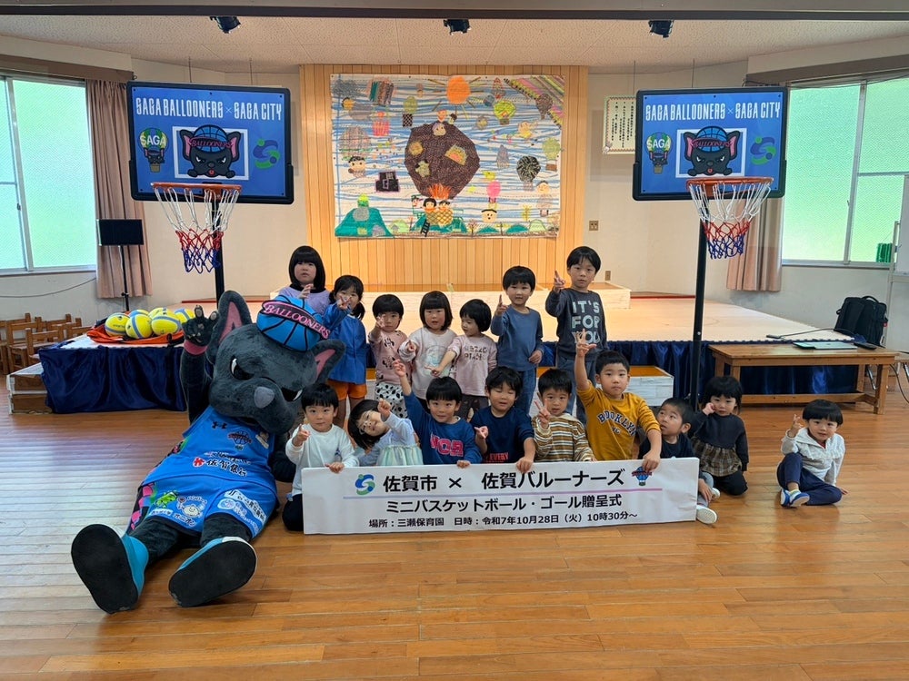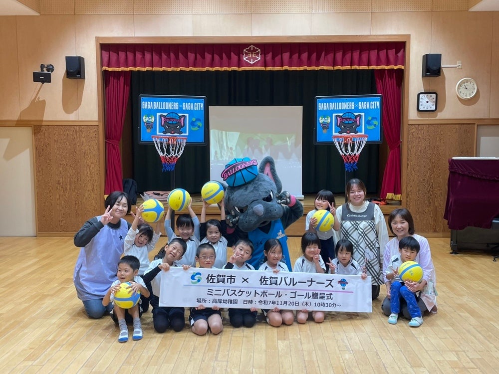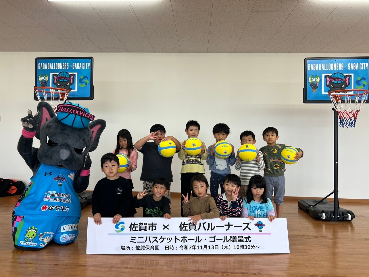 このたび、佐賀バルーナーズでは、昨年度に引き続き、佐賀市と佐賀バルーナーズの連携事業として、佐賀市内の教育・保育施設を対象に、室内用ミニバスケットゴール・ボールを贈呈します。