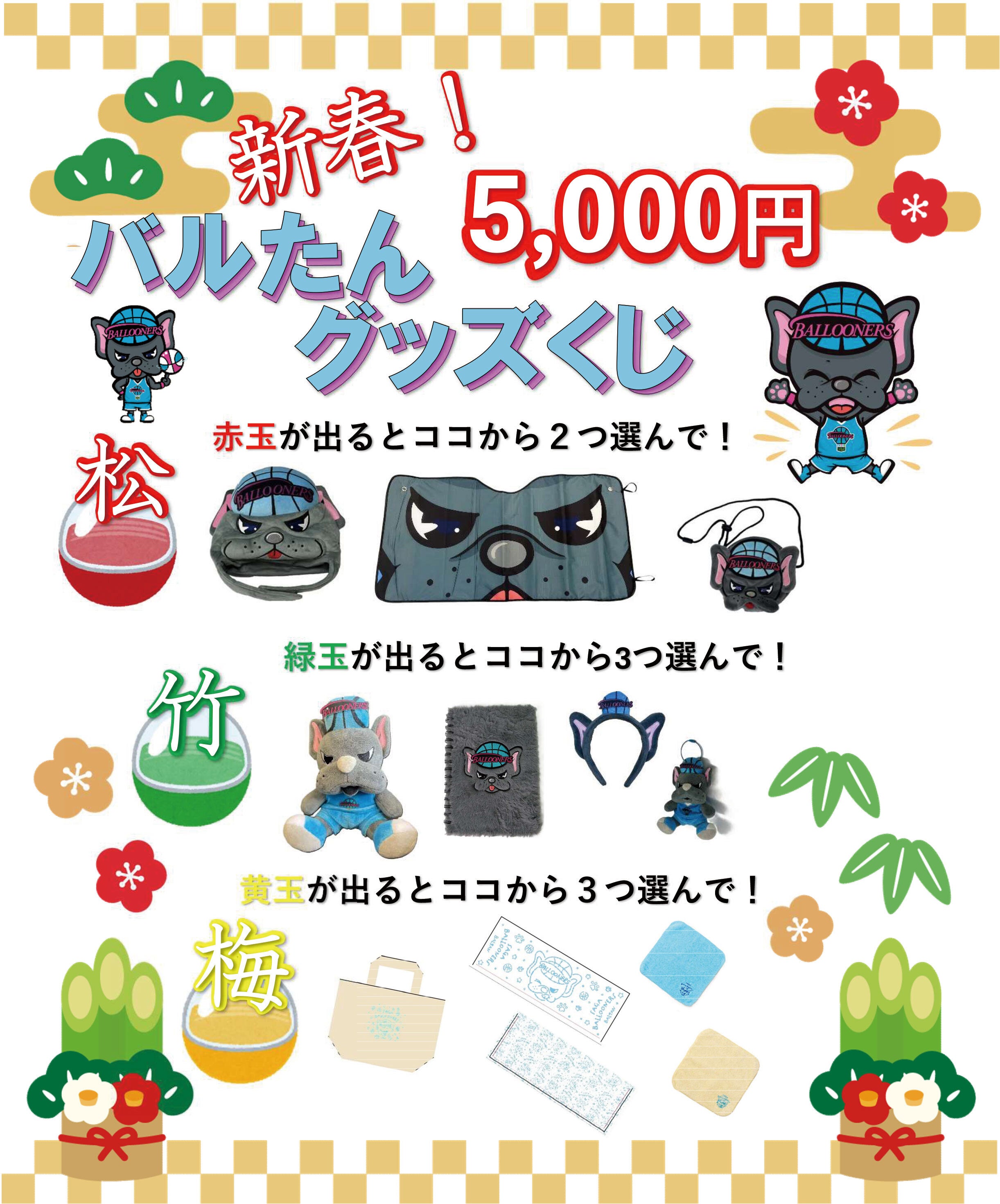 1月3日(土)・4日(日) 群馬クレインサンダーズ戦はSAGAアリーナ 2F グッズ売り場にてお正月ならではの特別企画として、「新春!バルたん グッズくじ」を開催いたします!